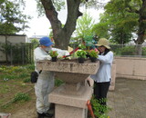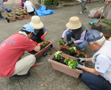 6月4日、市民憲章推進活動として、地域ボランティアの皆さんにより中央小学校校門と公民館の花壇整備が行われました。