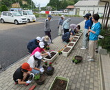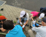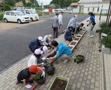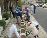 花壇整備(プランターに土や肥料を入れ、花の苗を植える)をしていただきました。