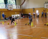 ボール順送り、ボール転がし、ボトル倒し、鯛釣り、玉入れの5種目の競技を4地区で競いました。
