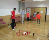 スポーツ推進員の吉岡さん、長野さん、幡垣さんに、モルックのルール、得点のつけ方