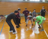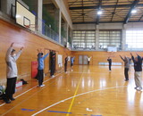 湖北中のジュニアリーダー6名と寿会のみなさんで出雲弁ラジオ体操、昔遊びリレー