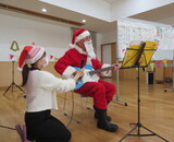 子どもたちはニッコリ。サンタさんのギター伴奏にあわせてみんなでいっしょに