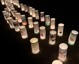外では、地域のみなさんで制作した「竹とうろう」、園児の皆さんが描いた「紙とうろう」が、