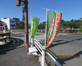 続いて4月8日(水)、この日は快晴。空は青一色ですが、風はとても冷たいので、寒くないように冬の装いで出勤。7:30からの自転車マナーアップ運動を行いました。北堀橋前に、私を含めて7名集まり5か所に分かれて活動。自転車を利用される方を中心に呼びかけを行っています。これにあわせて、交通安全運動の幟も設置しています。