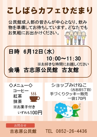 こしばらカフェひだまりを実施します。